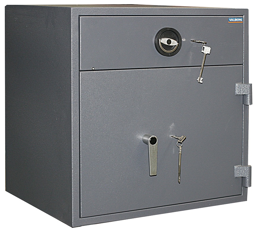 — В верхней части корпуса установлен выдвижной лоток 104х517х124 мм, через который производится закладка денег в сейф (открытие двери не требуется).