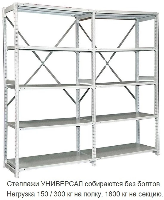- Металлические полки с максимальной нагрузкой на полку – 150 кг или 300 кг (усиленные полки).