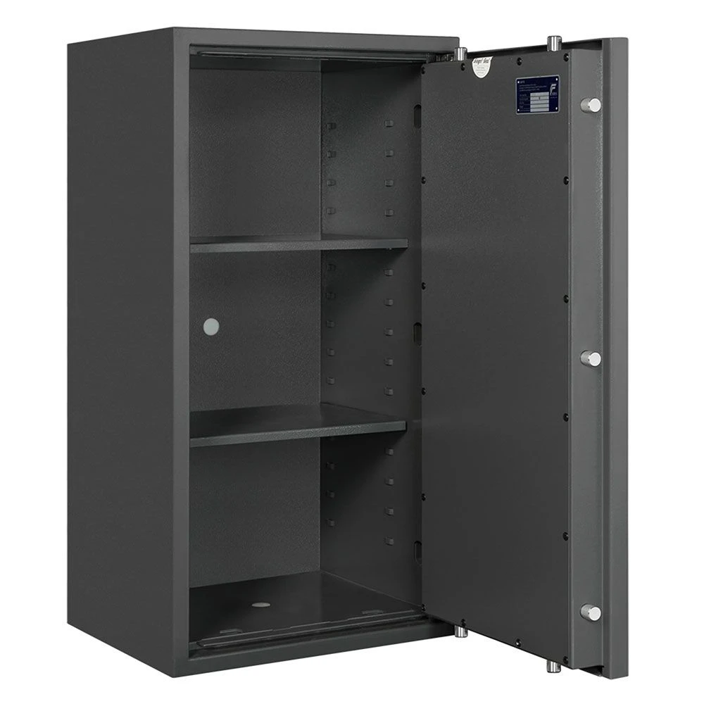 - Высокий уровень защиты сейфа обусловлен мощной структурой корпуса и двери, известной как «сэндвич»: между тремя слоями стали помещён специальный наполнитель, обладающий повышенной устойчивостью к разнообразным вскрывающим инструментам. Серия Lyra имеет очевидное преимущество перед большинством сейфов данного класса, имеющими лишь двухслойный корпус.